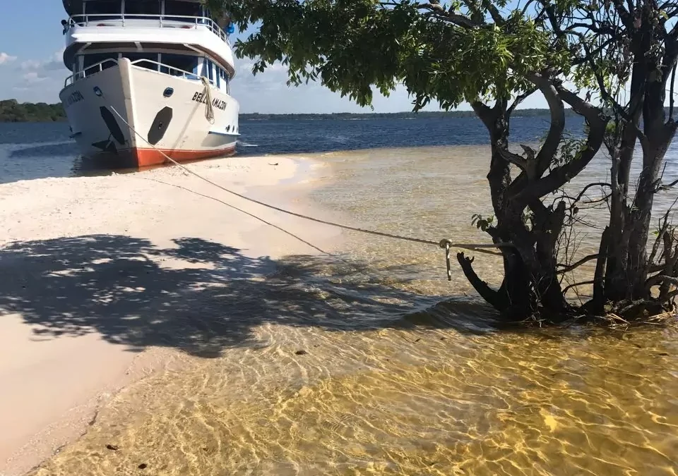 Se a sua escolha for visitar Alter do Chão em meses de seca, a experiência imperdível é navegar pelo Rio Arapiuns – e dormir embarcado. “Você não imagina encontrar águas tão transparentes quando vai navegar por rios, mas ali na região do Rio Tapajós e seus afluentes (que é o caso do Arapiuns), a água é muito clara e cristalina. Se der sorte, dá para ver os botos – ou golfinhos amazônicos – nadando ao lado. Encanta e surpreende”, conta Denise.