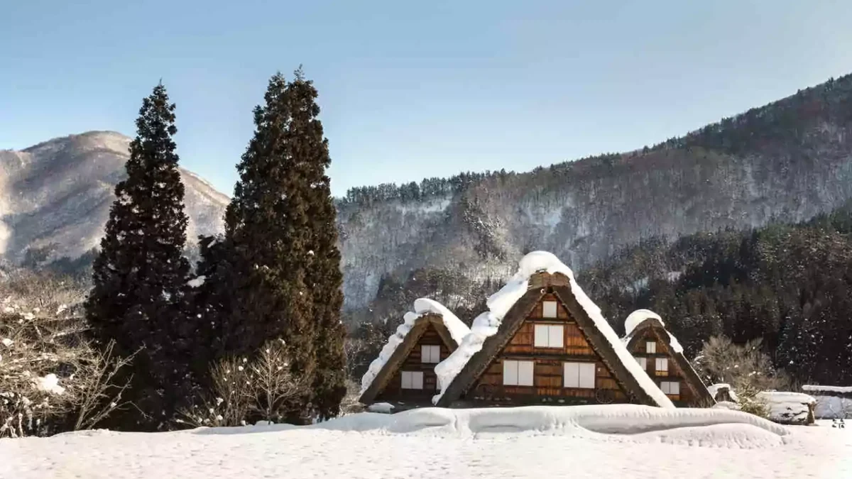 A tradicional aldeia de Shirakawago, em meio a montanhas, reforça essa sensação com casas em estilo gassho. O telhado de palha é chamado de gassho-zukuri, que significa “mãos juntas em oração”, por parecer duas mãos em prece. Os telhados da vila são assim para facilitar a remoção da neve, e são muito bonitos de ver.
