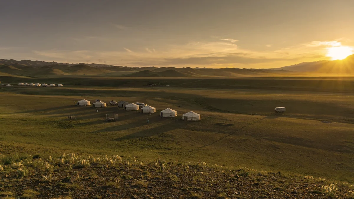 Descubra a experiência de se hospedar em uma tenda circular inspirada nas tradições nômades da Ásia Central.