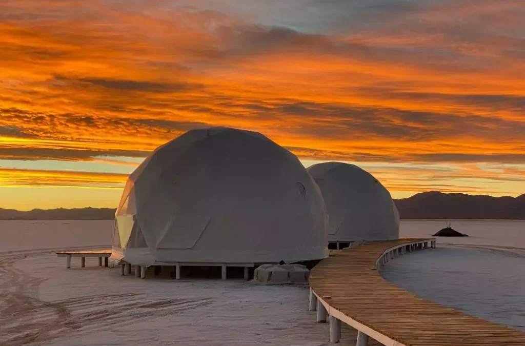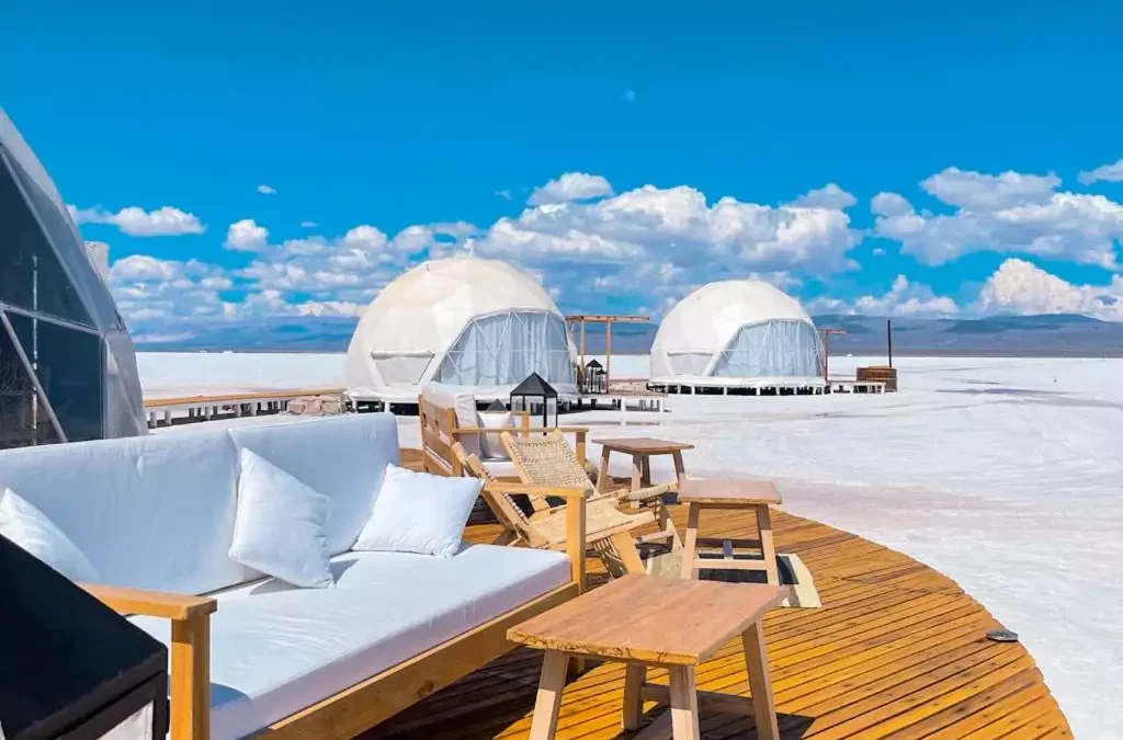 Inaugurado em novembro de 2021, o glamping de Salinas Grandes é uma proposta única no mundo e a tecnologia aplicada em sua construção é seu grande magnetismo. Classificado como 100% sustentável e totalmente desmontável, o hotel de alto padrão no meio da puna jujeña é um espaço de máximo conforto que permite o desfrute exclusivo deste paraíso natural.